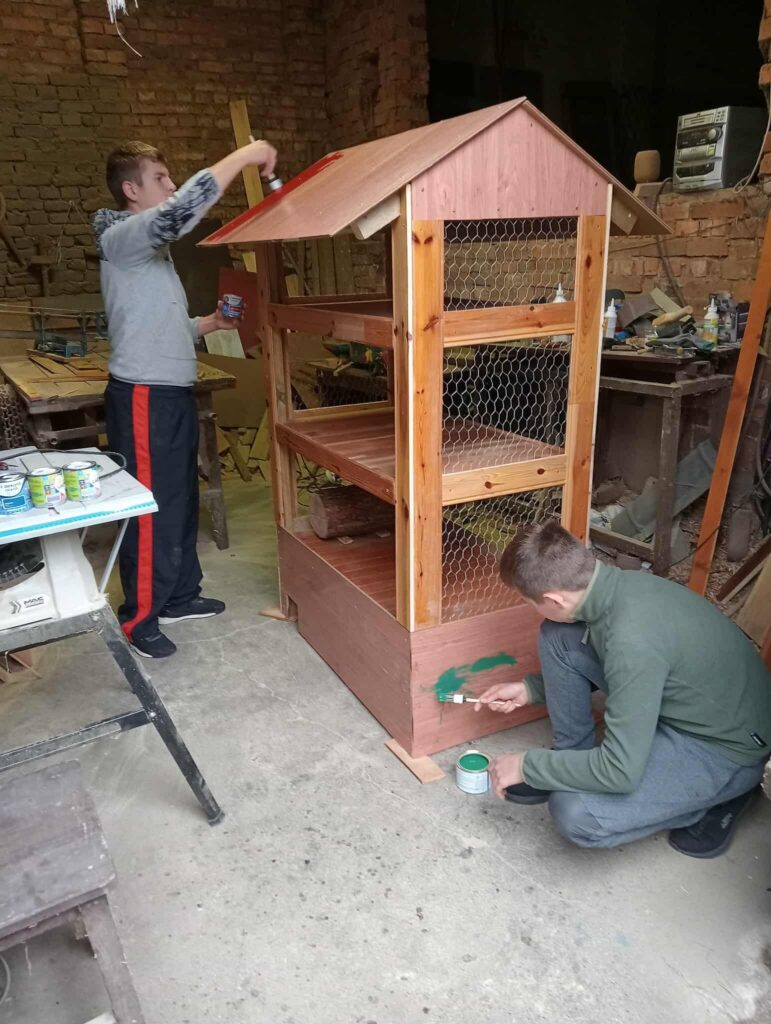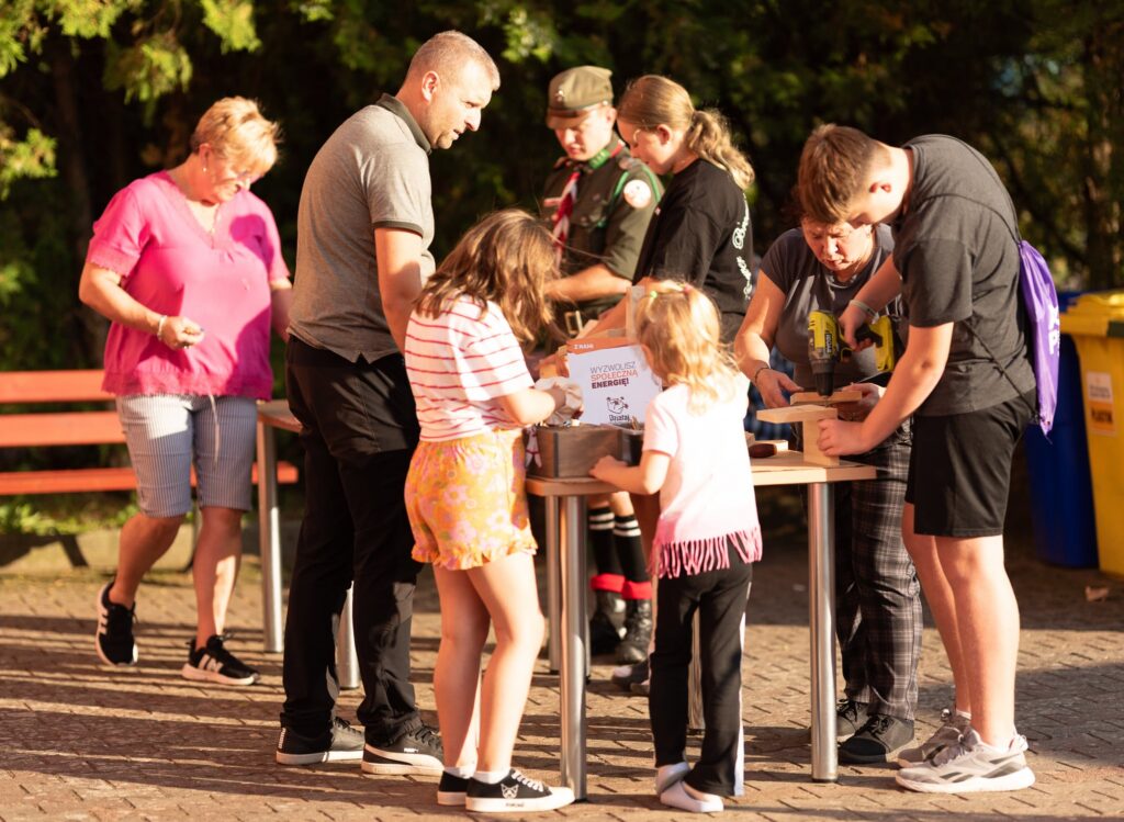 dzieci wspólnie z rodzicami zbudowały budki lęgowe dla ptaków![]()